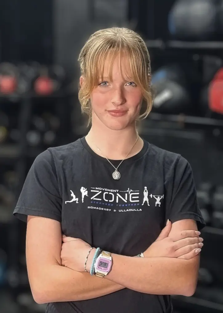 Elle has trained at The Movement Zone since 2022 and began instructing in 2024. What started as helping out has grown into a real passion — now she’s on the mats several times a week, guiding younger students while building her own skills. She’s passionate about pushing people beyond their comfort zones and loves seeing confidence, patience, and leadership flourish in her students.